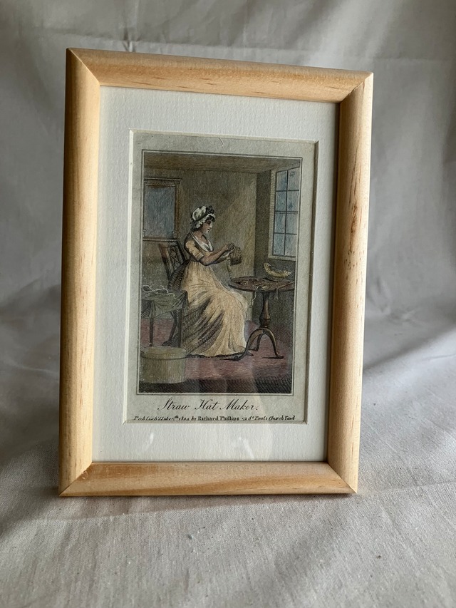 ◆おおよそサイズ 額 縦168㎜×横116㎜ 印刷サイズ 縦(文字まで)105㎜×横62㎜ 英国で見つけてきました。1804年の版画に彩色されたアンティークです。額は現在のもの。ガラス板が入っています。手軽なサイズですので、お好きなところに飾っていただけます。直射日光だけは避けていただけるとよいと思います。