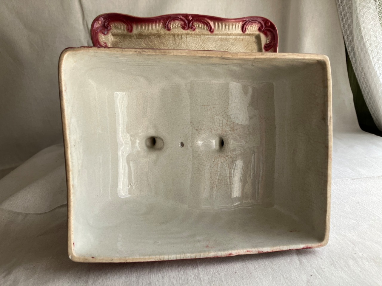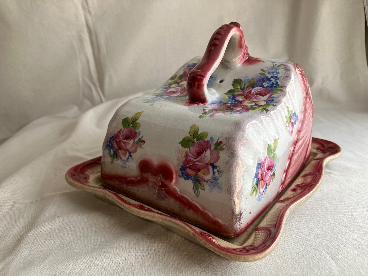 英国は乳製品が豊富で、地域ごとの沢山のチーズがあり、おいしい国。バターやチーズをこうした陶器のケースにいれてキッチンで保管していました。