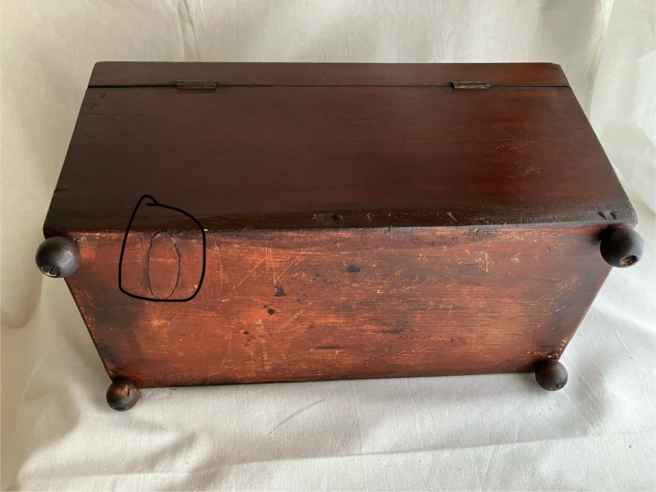 画像に丸をつけていますが、裏側に埋めた修理跡、フタに数箇所凹み、薄い割れがあります