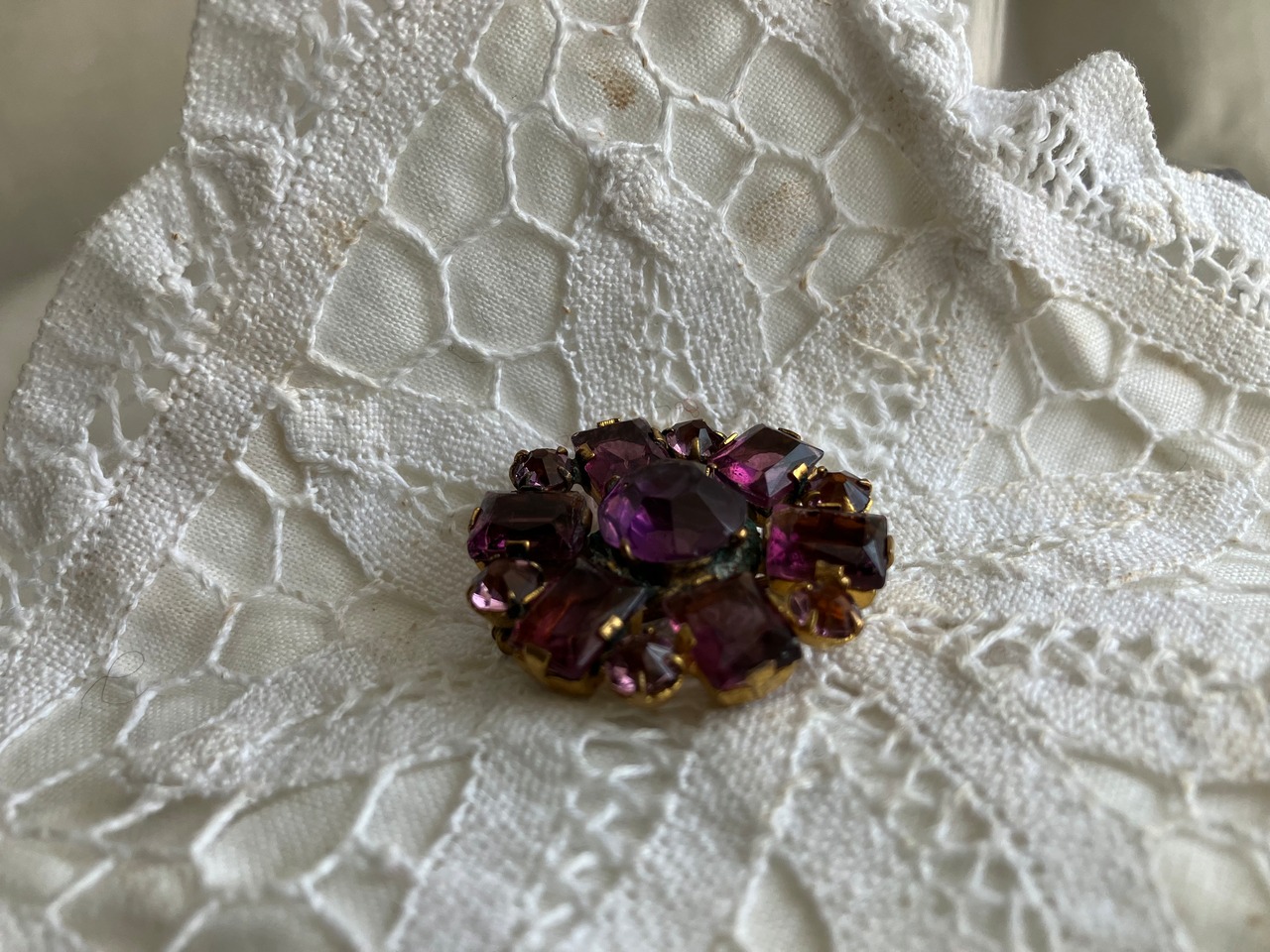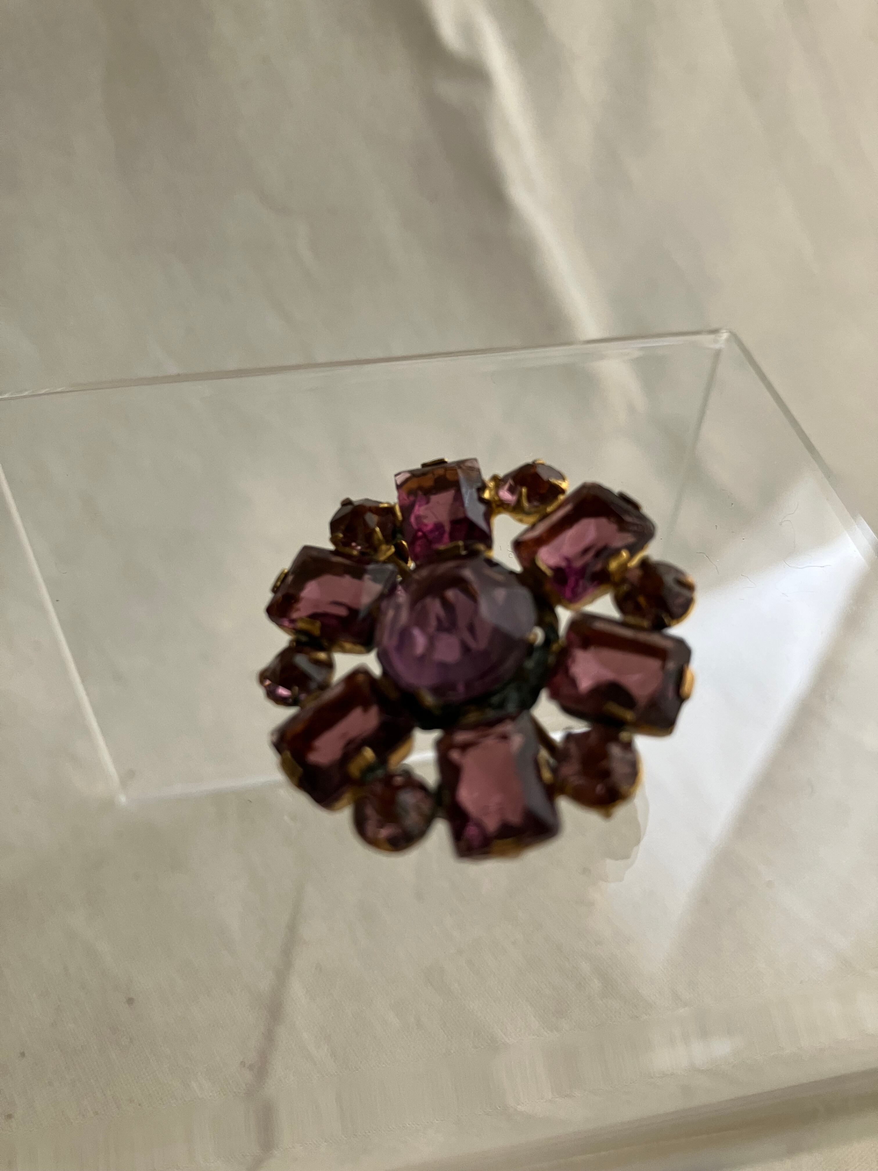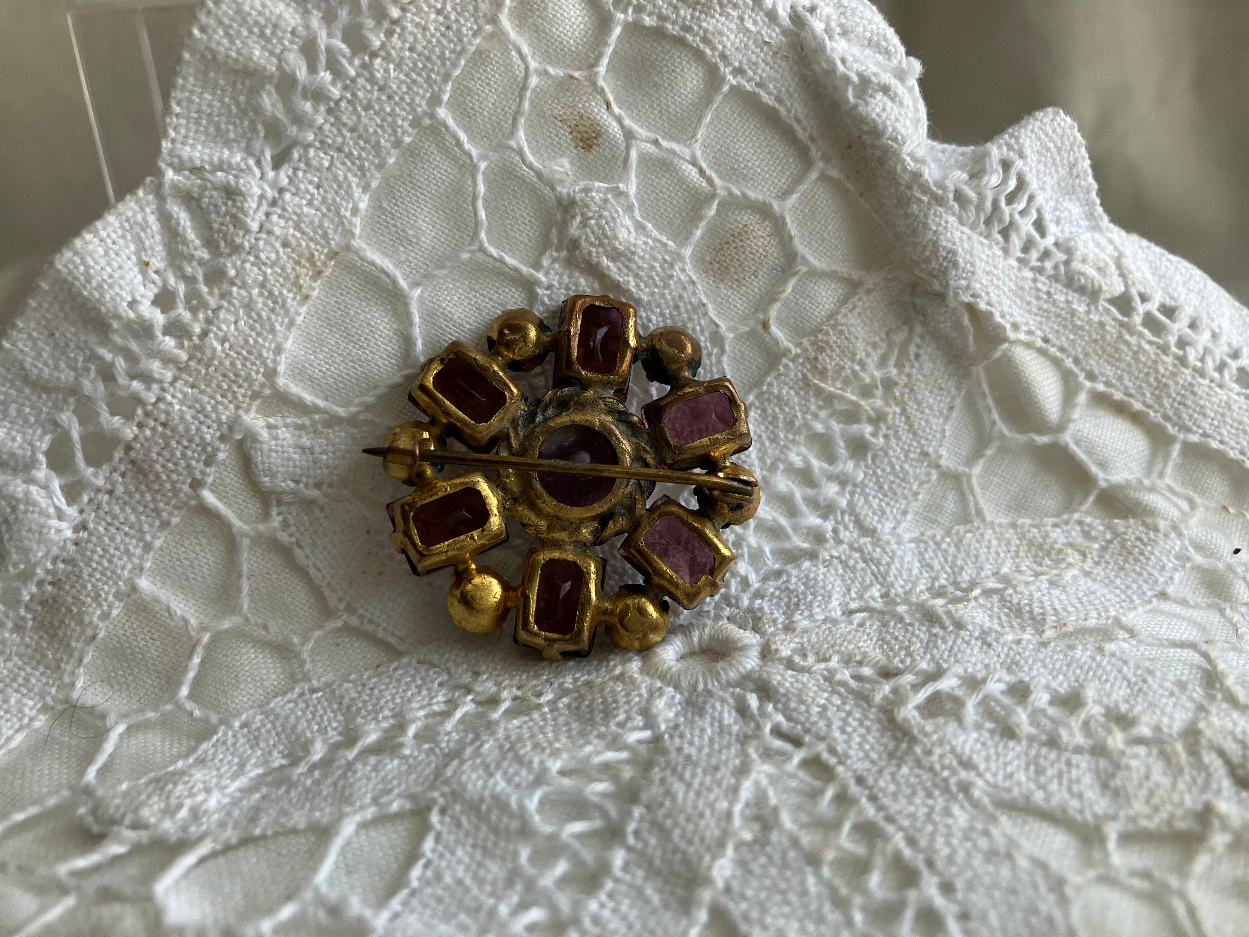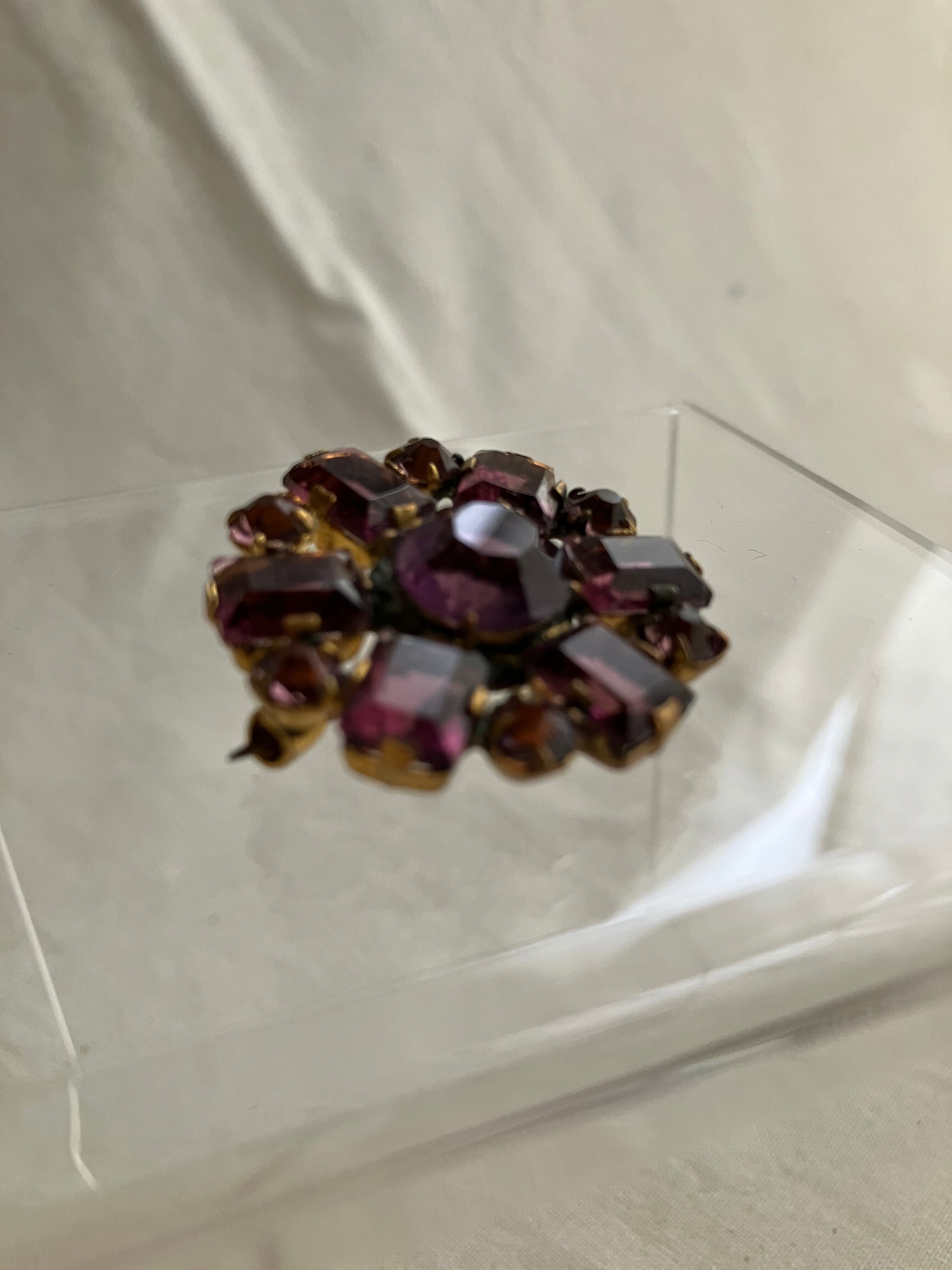 英国で見つけてきましたパープルの色ガラスのブローチ おそらく1920年頃のチェコスロバキア製