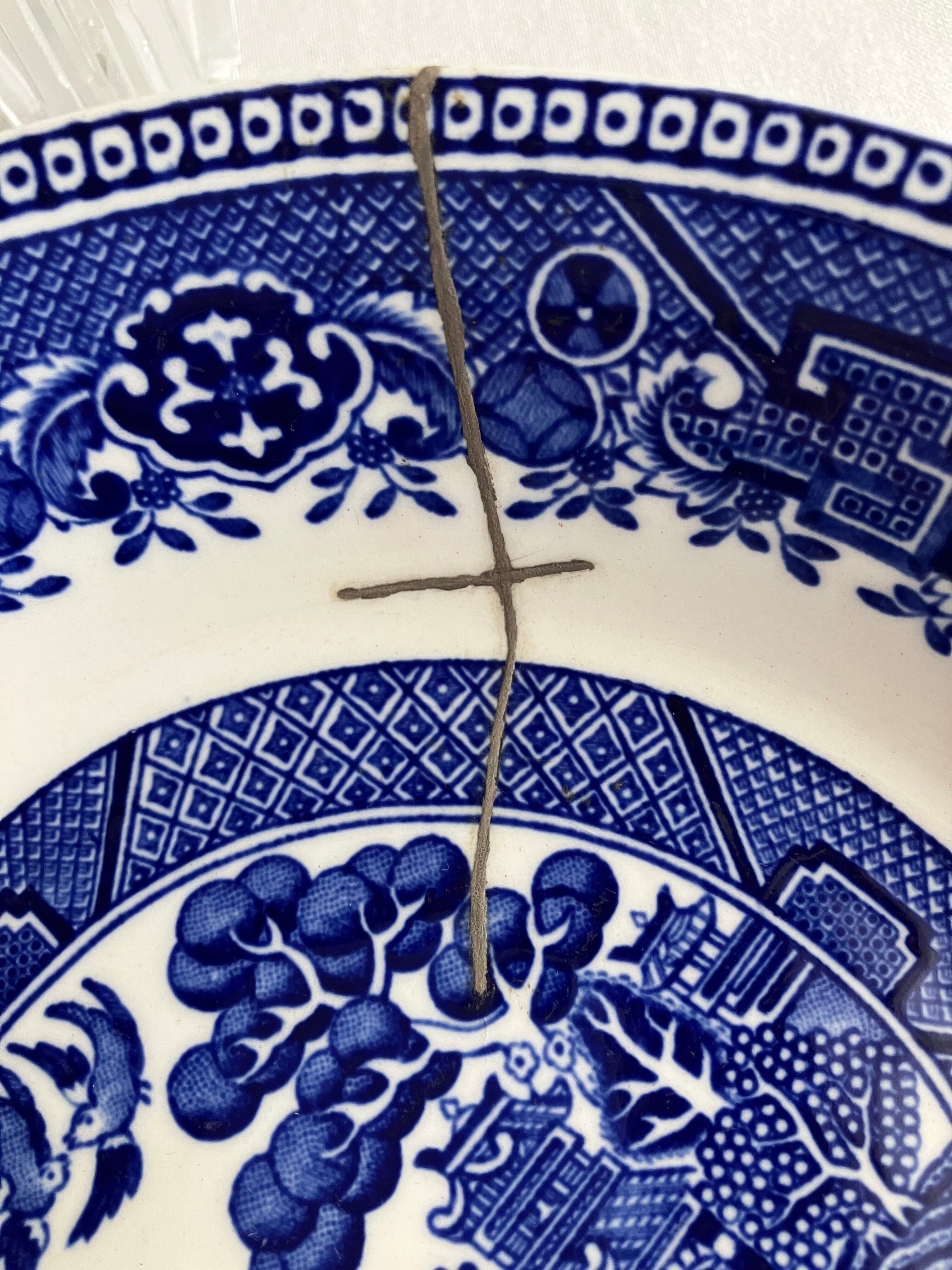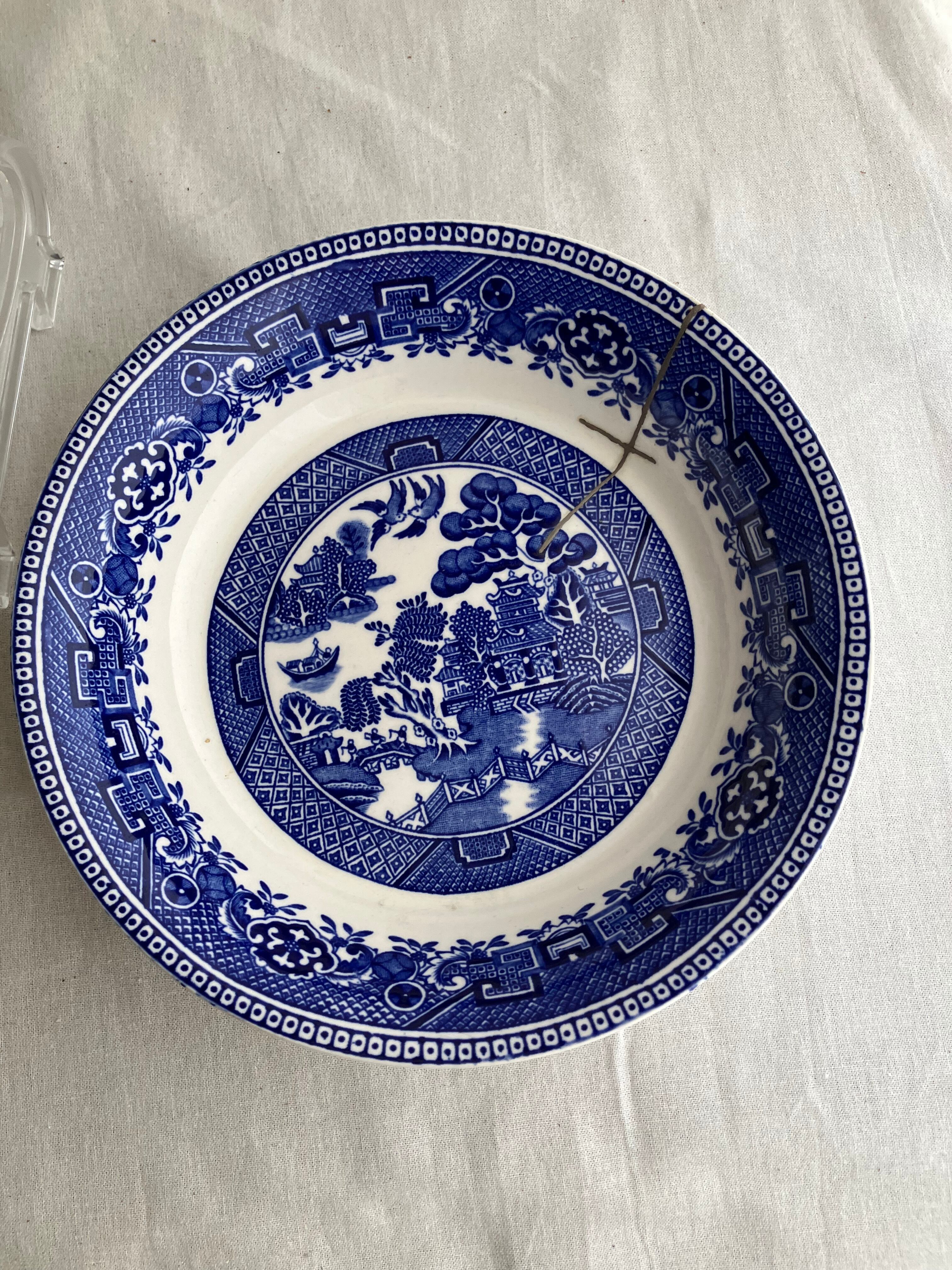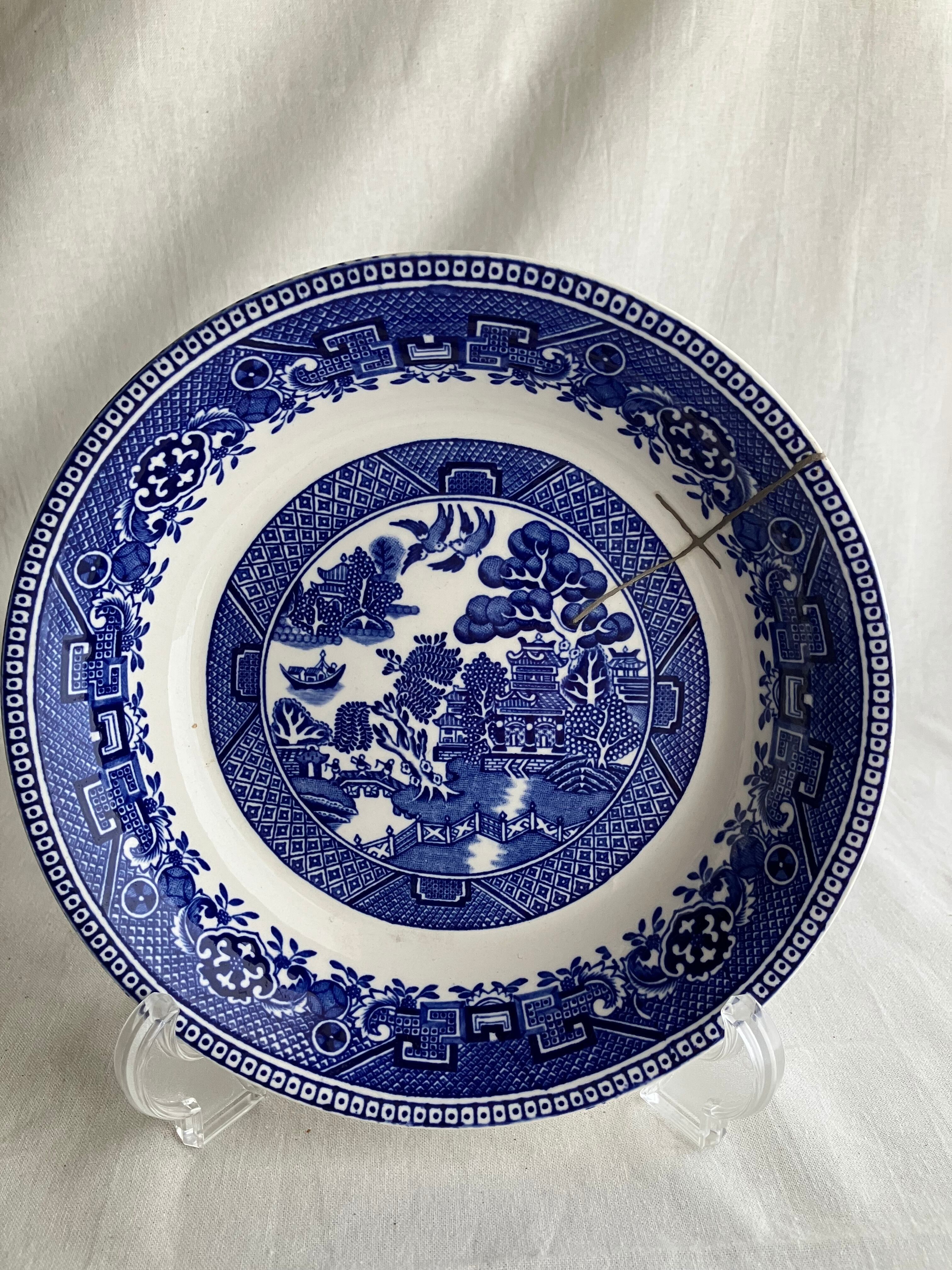 ブルー&ホワイト 深皿 Alfred Meakinオールドウィロー【金継ぎ】PBW0008