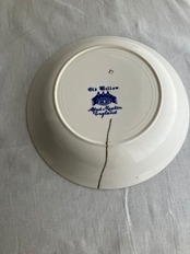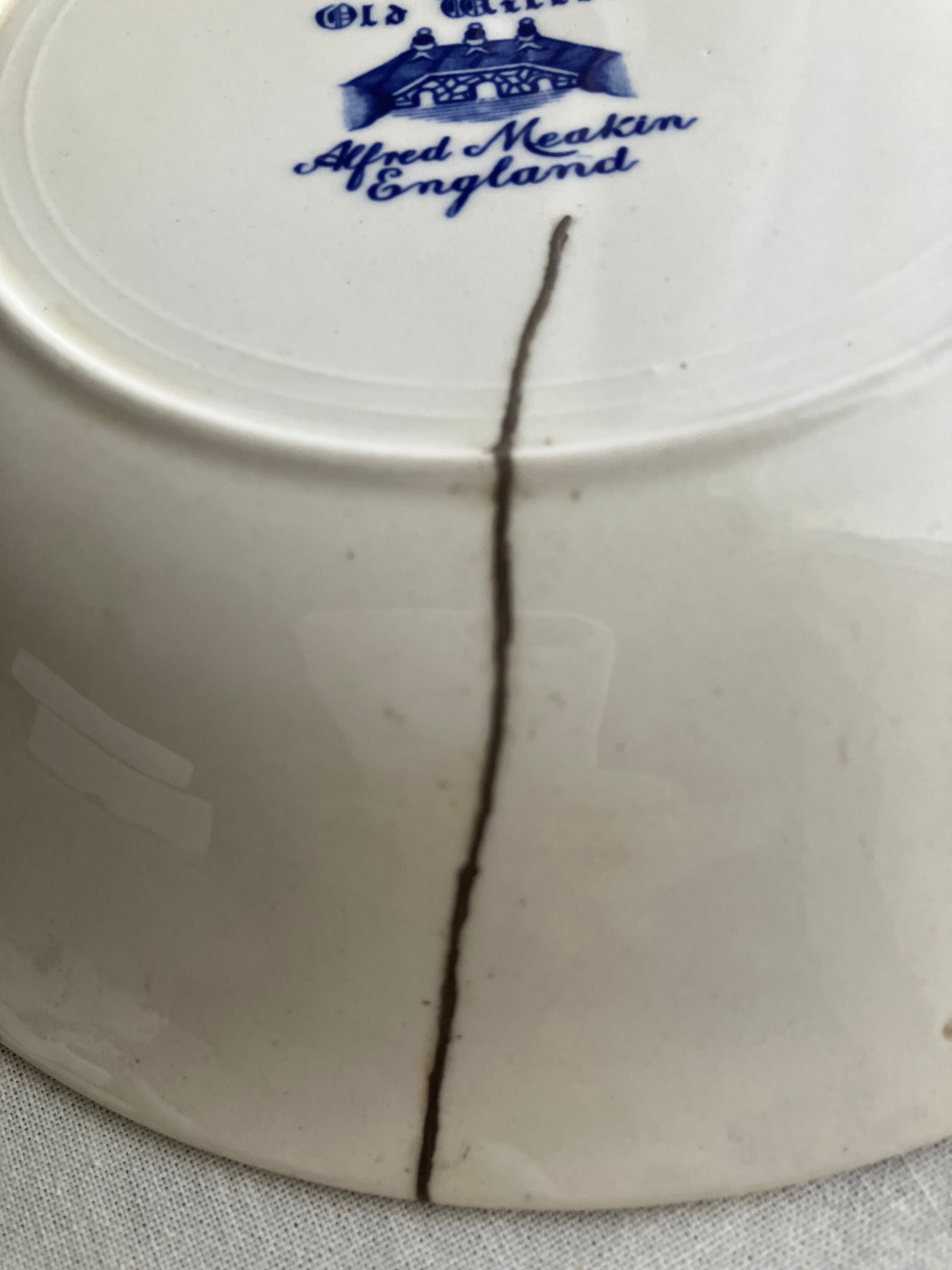 アルフレッド・ミーキンは、窯業の街、ストークオントレントのヘンリーに1883年に設立されました。陶器と磁器の中間のセミポーセリンの代表的な会社で、1930年頃のオールドウィローデザインが多いので、こちらもその頃ではないかと思います。