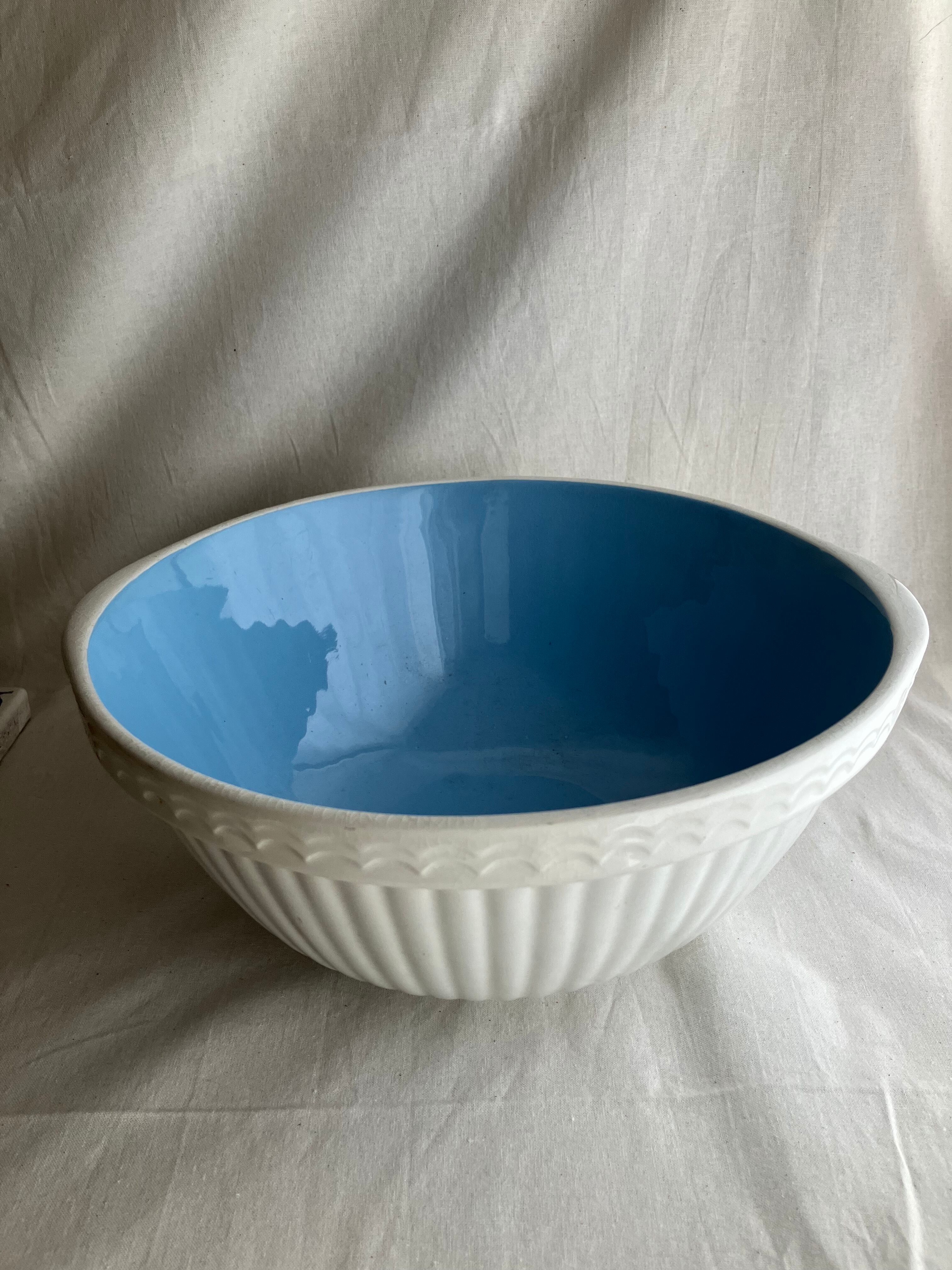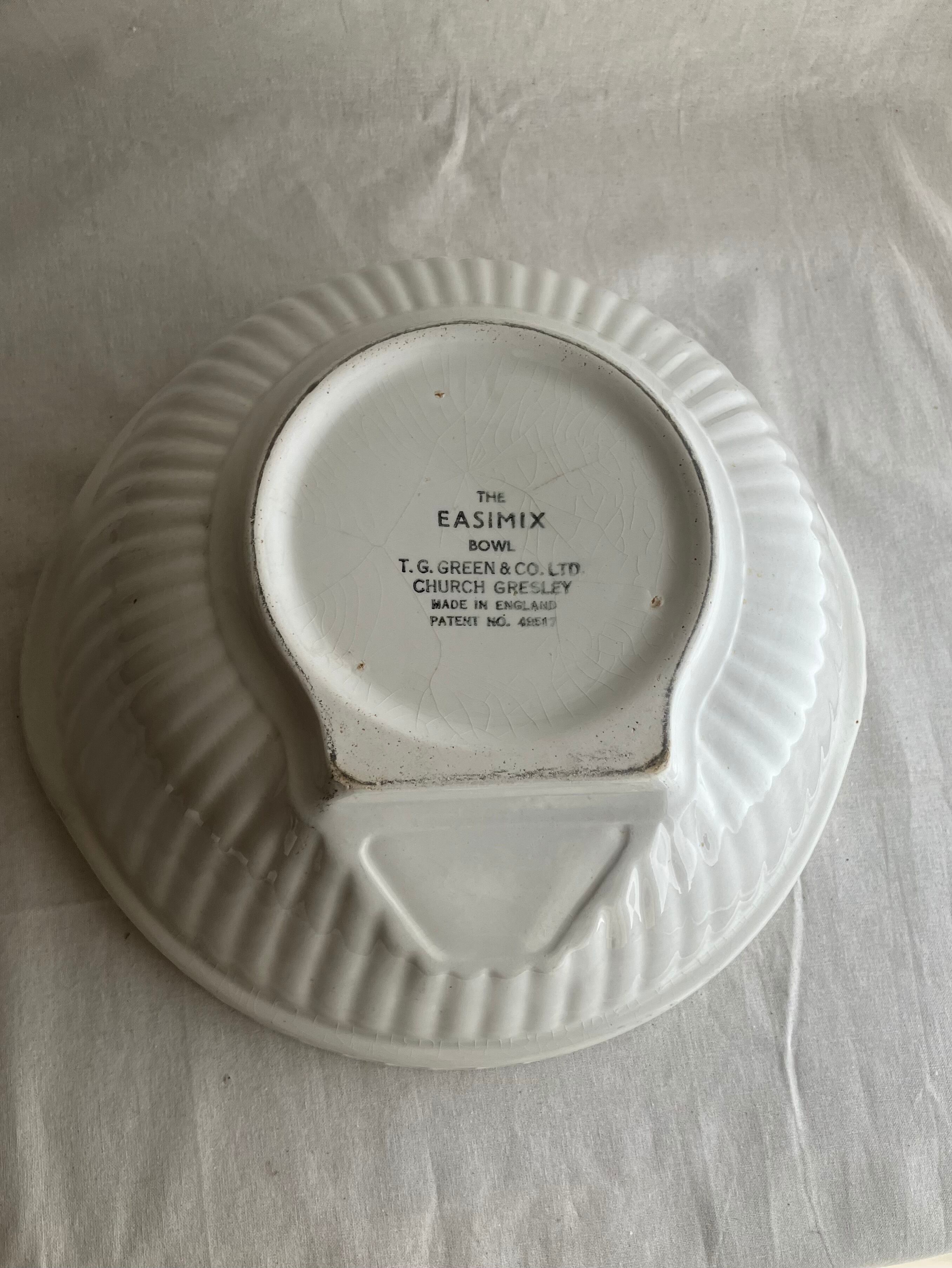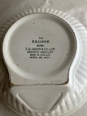 1864年にトーマス・グッドウィン、グリーンが起こしたT.G.Green。英国陶器の街ストークオントレントの窯です。現在もブルーのストライプが代表的で、会社は続いていますが、チャーチストリートの工場は19世紀末に閉鎖となりました。 特許パテントNo 49517 1940年代のものと思われます。使用感はありますが、内側がT.G.Geen らしいきれいなブルーです。