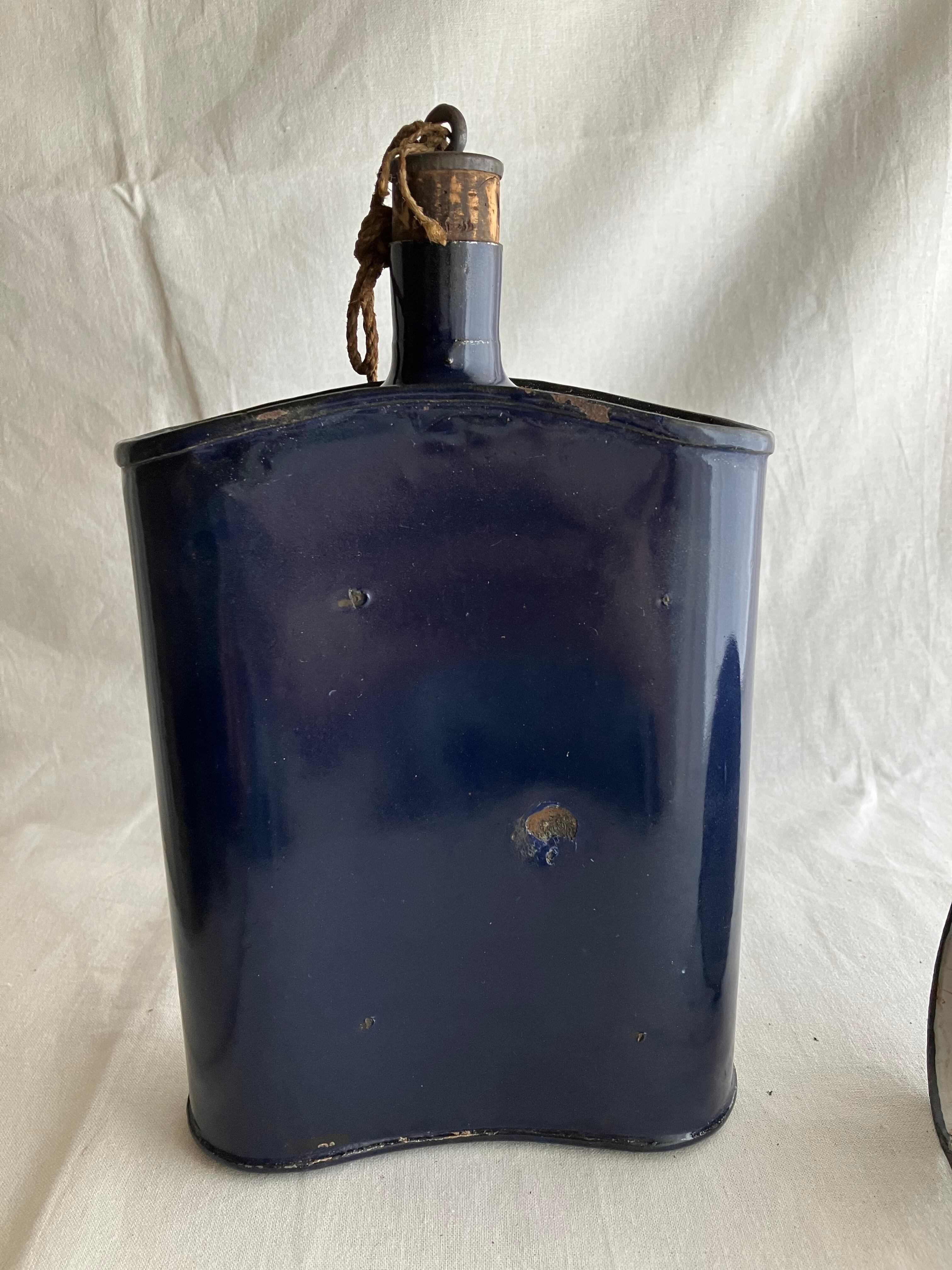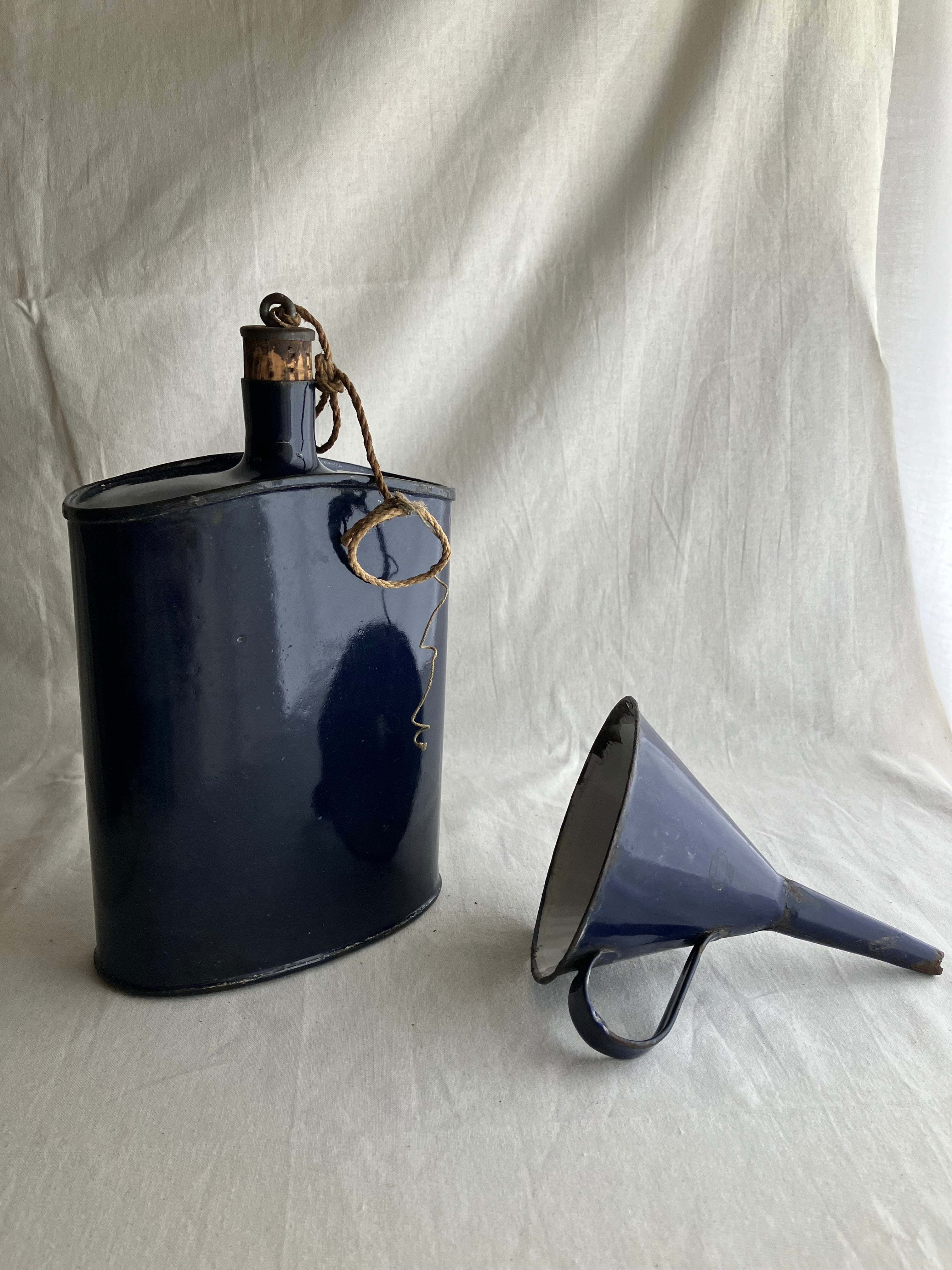 ホーロー紺 ビンテージ水筒&漏斗 M0009