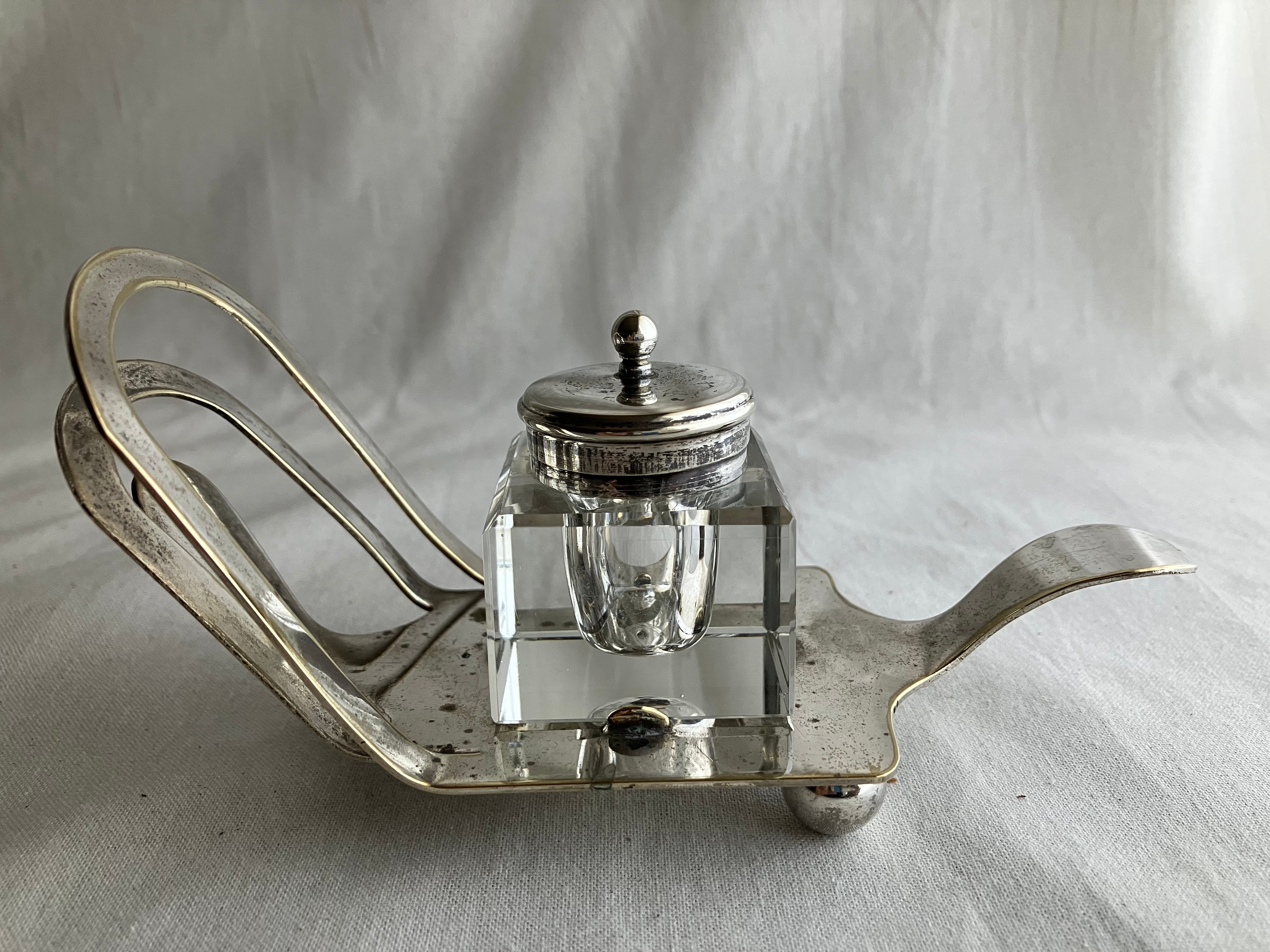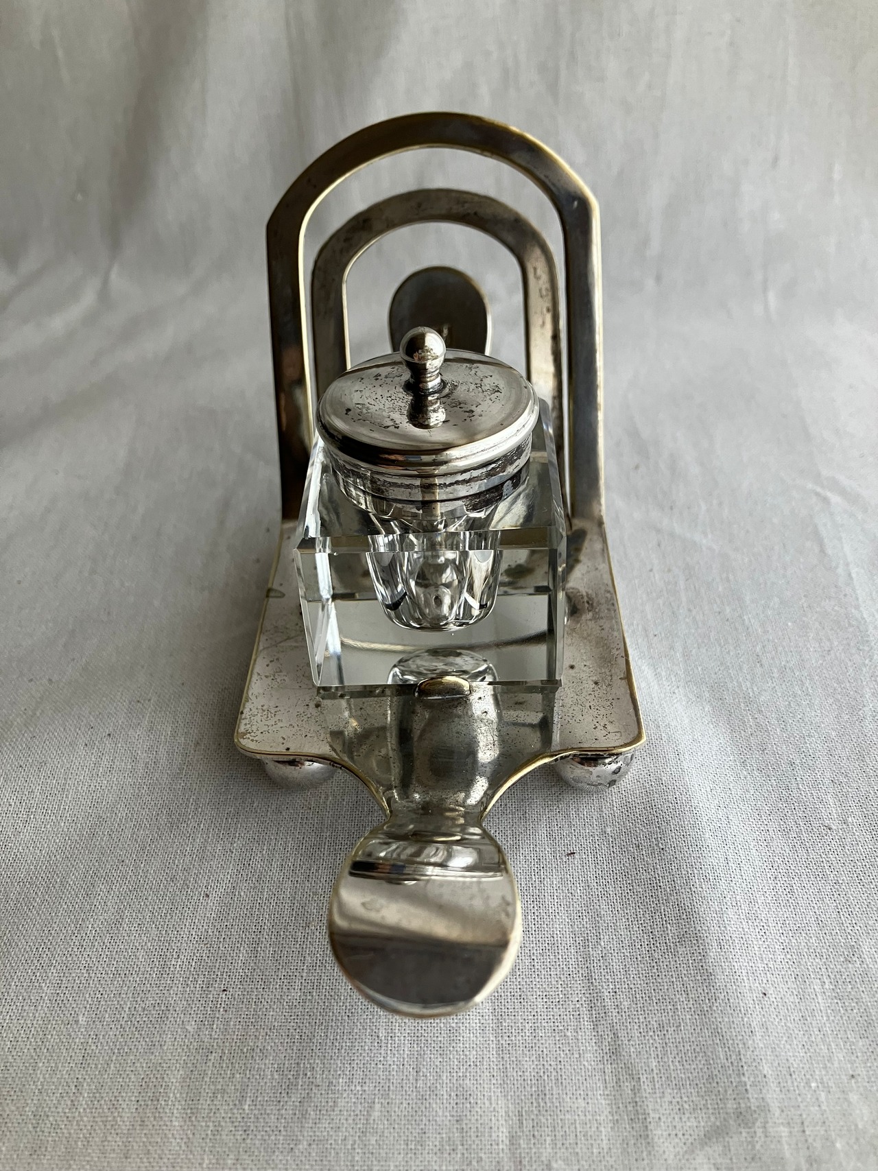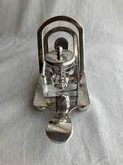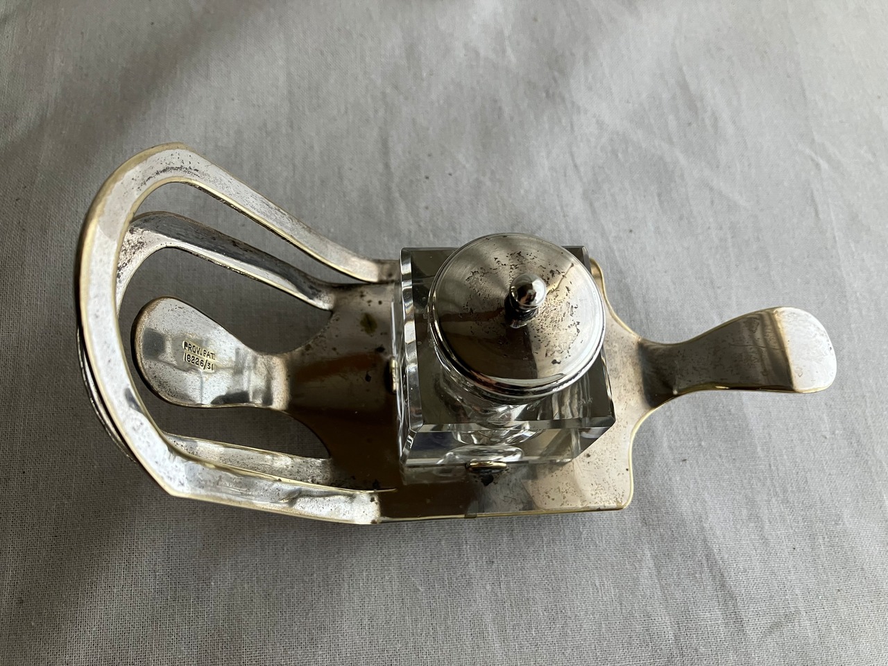 1931年頃に英国北部のシェフィールドあたりで作られたものです。台座の銀メッキ部分には、取り切れていない変色がありますが、これも時代を経てきた味があります。