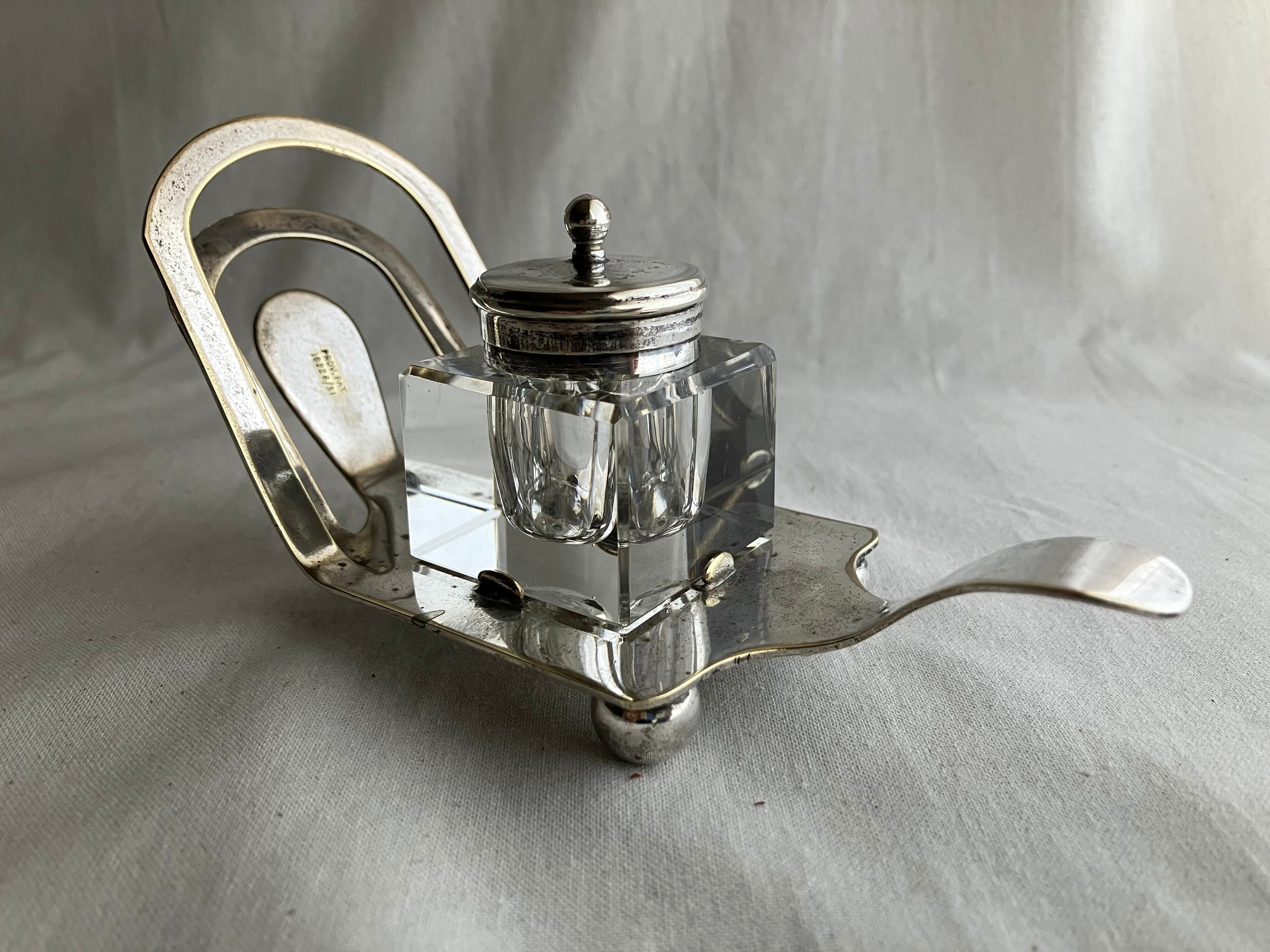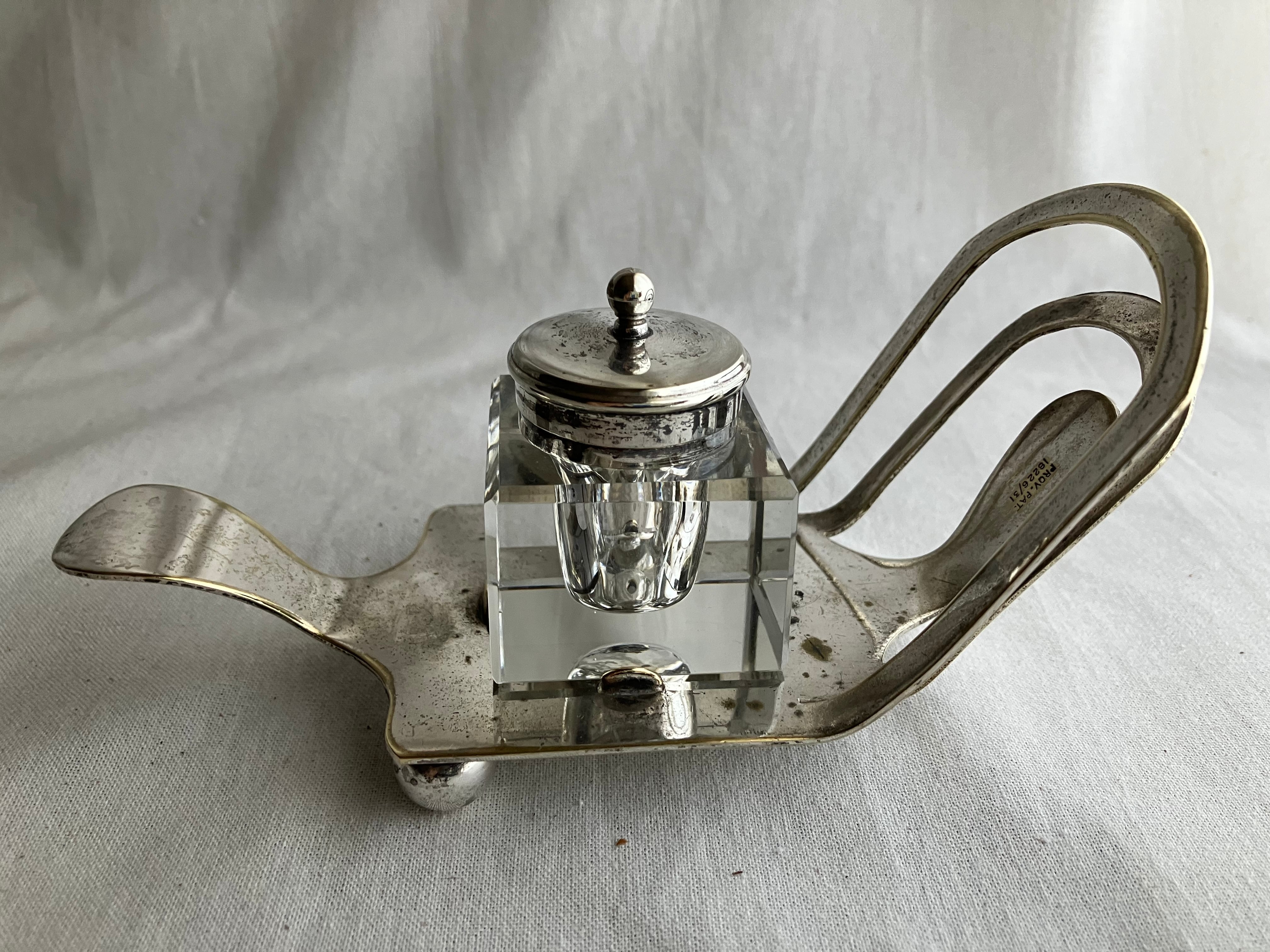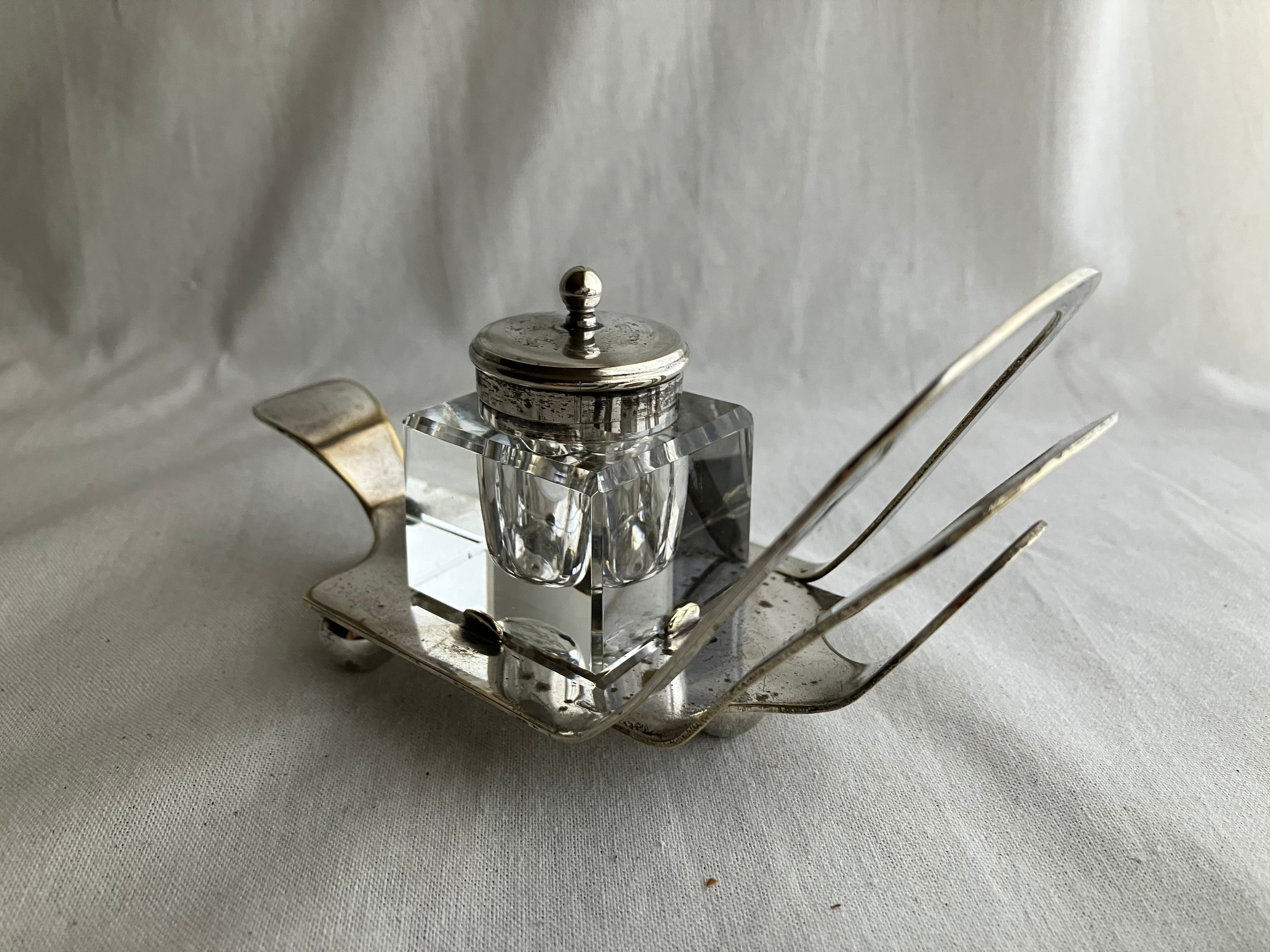 1931年頃に英国北部のシェフィールドあたりで作られたものです。台座の銀メッキ部分には、取り切れていない変色がありますが、これも時代を経てきた味があります。