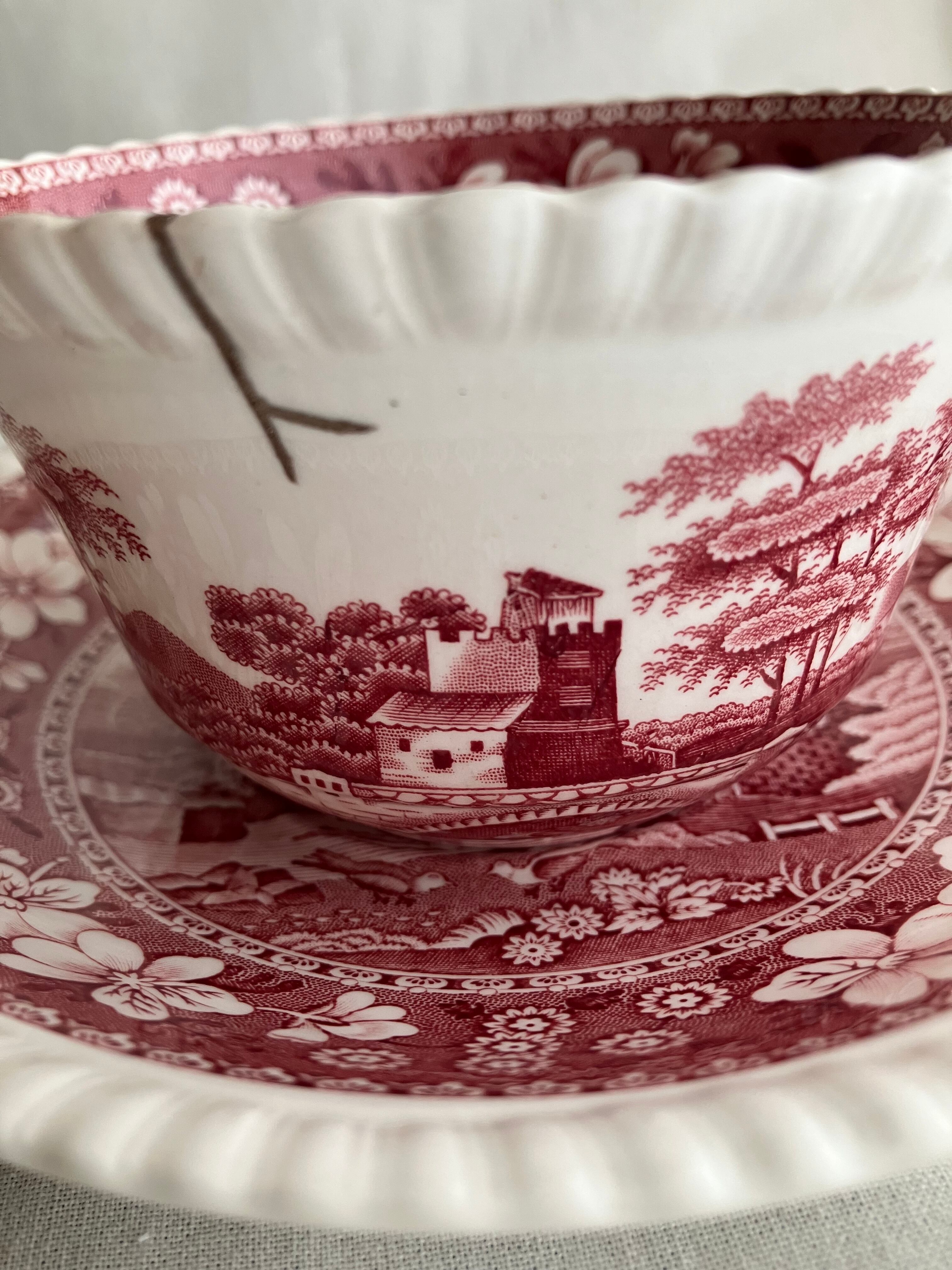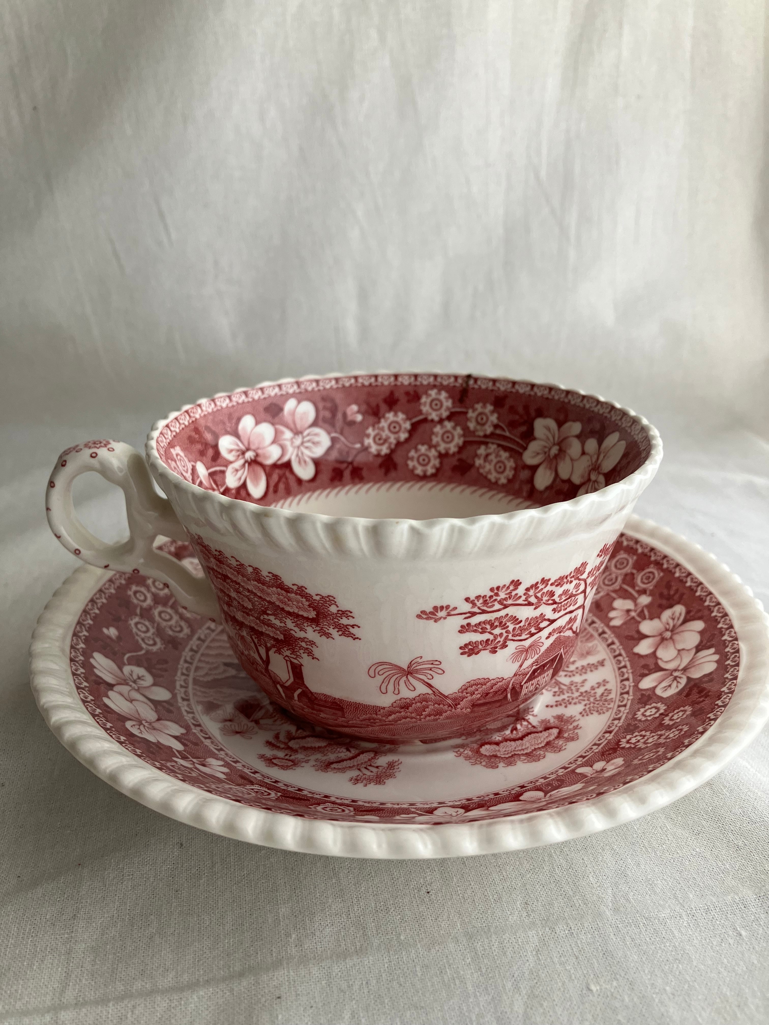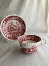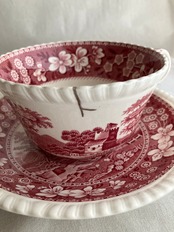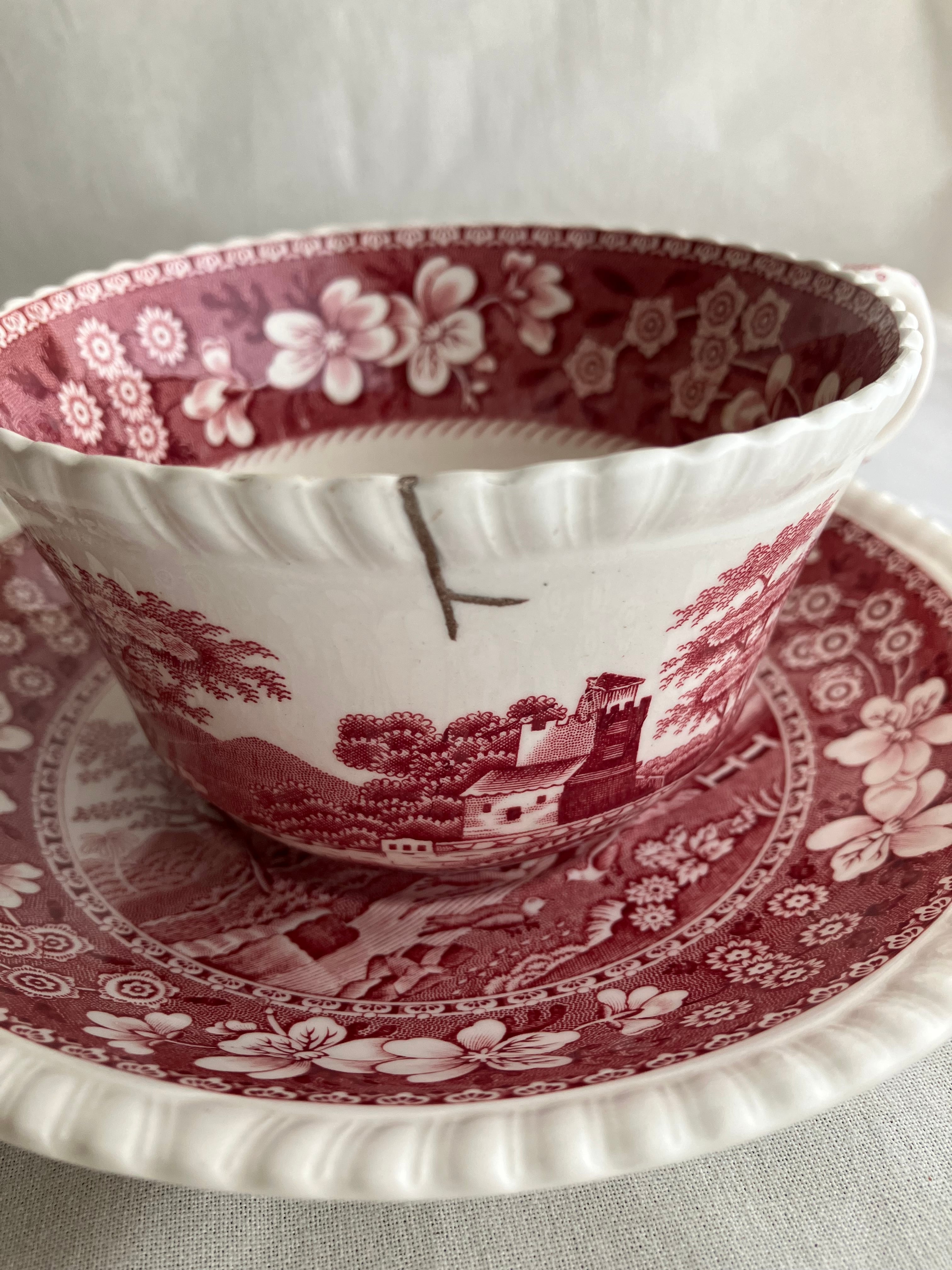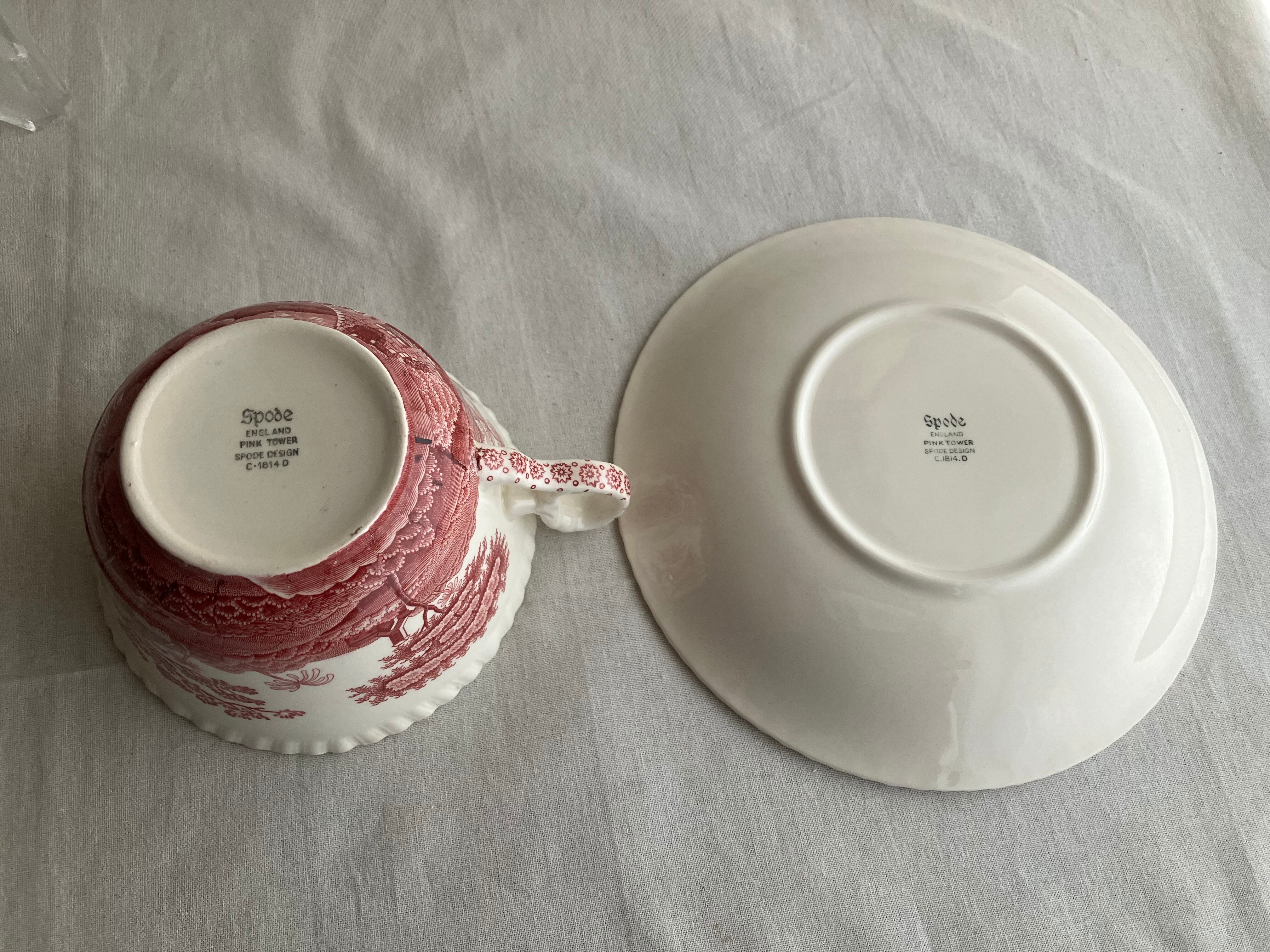 カップ&ソーサー SPODE ピンクタワー 【金継ぎ修理(錫)】PC0016